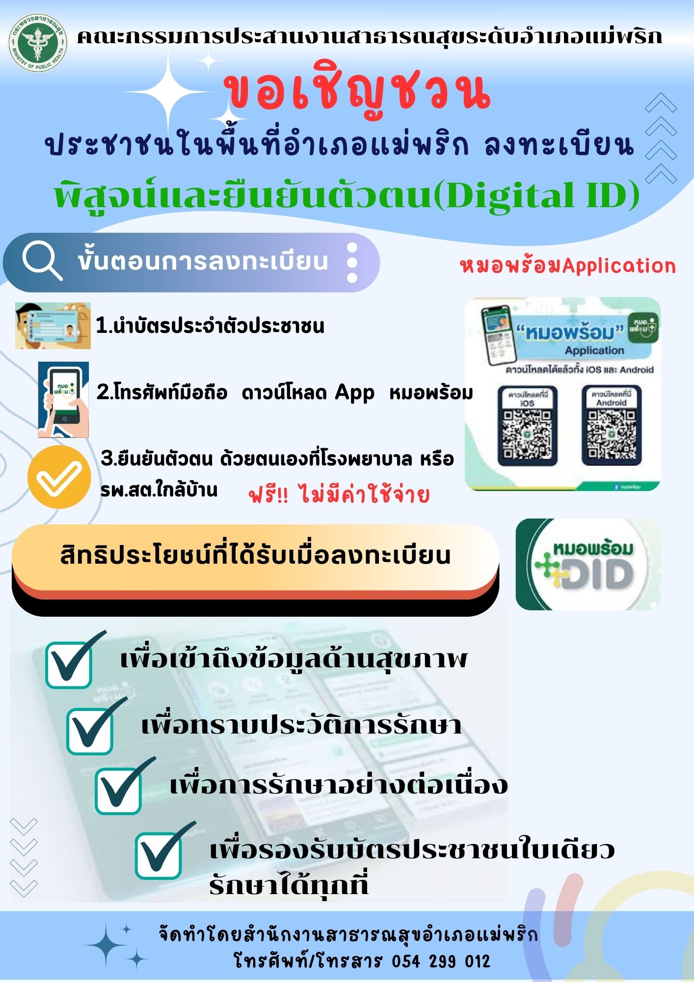 ขอเชิญชวน ประชาชนในพื้นที่อำเภอแม่พริก ลงทะเบียน พิสูจน์และยืนยันตัวตน (Digital ID) Posted on 19/01/2024Posted in ข่าวประชาสัมพันธ์ Post navigation ประกาศเจตนารมณ์ นโยบายไม่รับของขวัญและของกำนัลทุกชนิดจากการปฏิบัติหน้าที่(No Gift Policy) ประจำปี 2567 Leave a ReplyYour email address will not be published. Required fields are marked *Comment * Name Email Website